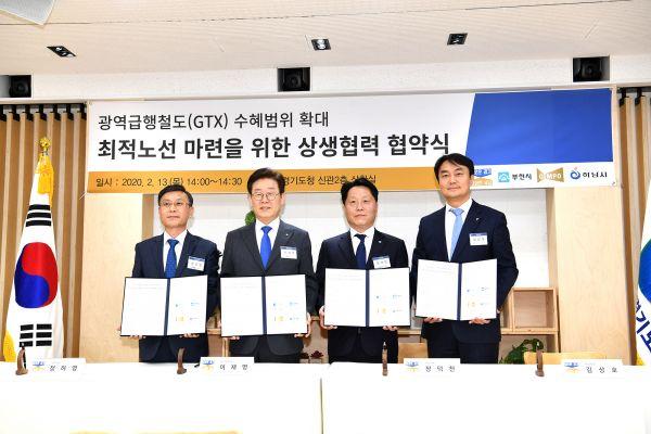 김상호 하남시장은 13일 경기도청 상황실에서 개최된‘광역급행철도의 수혜범위 확대 최적노선 마련을 위한 상생협력 협약식’에 참석했다.