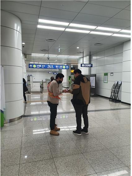 대야동 마을자치과에서는 지난 12일 대야동 주민센터와 대야역 일대에서 민원인들과 주민들을 대상으로 ‘코로나19 예방 캠페인’을 진행했다.