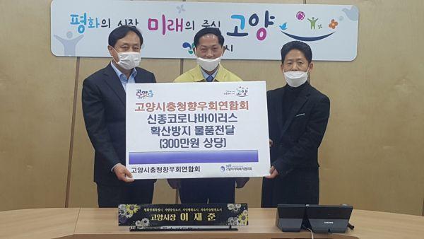 고양시는 지난 12일 시청에서 관내 취약가구의 신종코로나바이러스 감염 예방을 위한 ‘고양시충청향우회연합회 신종코로나바이러스 감염 예방을 위한 물품 전달식’을 했다고 밝혔다.