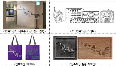 또한 응용디자인으로 우수건축자산 그래픽과 서울건축자산 현판 디자인, 에코백 등을 개발했다.
