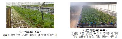 비가림, 포트보다 꺾꽂이로 묘를 기르면 균일한 묘를 계획적으로 생산할 수 있고 병해충 관리와 작업 효율성이 높지만, 체계적인 육묘 시스템이 마련돼 있지 않아 그간 농가에서는 꺾꽂이 묘 생산에 어려움을 겪어 왔다.