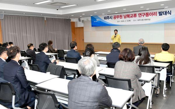 파주시는 지난 13일 최종환 파주시장, 파주시 공무원 남북교류 연구동아리 회원 30여명이 참석한 가운데 ‘파주시 남북교류 연구동아리‘를 발족했다.