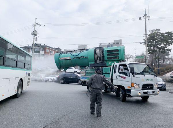 여주시는 국방어학원 임시생활시설이 인접지역인 가남읍의 방역소독에 총력으로 대응하고 있다.