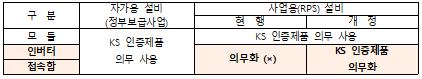 종래에는 정부 보급사업에 한정되었던 KS 인증 인버터, 접속함 의무 사용을, 앞으로는 사업용 설비에도 의무적으로 적용토록 한다.
