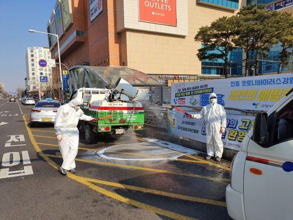 소독구간은 일산동구 중심상가인 라페스타, 웨스턴돔 일대와 고양종합터미널 및 지하철역 주변도로 마두동 학원밀집가 등 시민 통행량이 많은 도로 등이며 5인 1조로 구성된 방역단이 바이러스 종식 시까지 주2회 이상 소독을 진행한다.