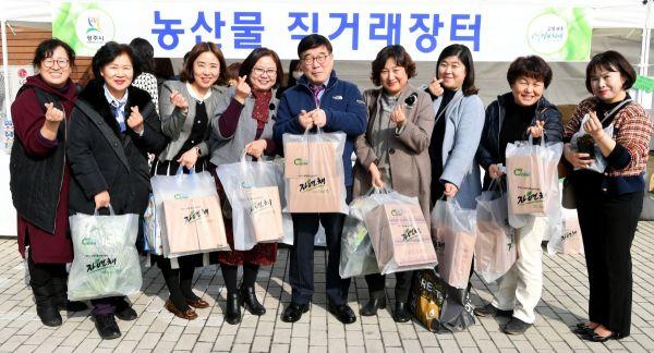광주시는 지난 14일 시청 1층 민원실 앞 주차장에서 농·축산물 직거래장터를 개장했다.