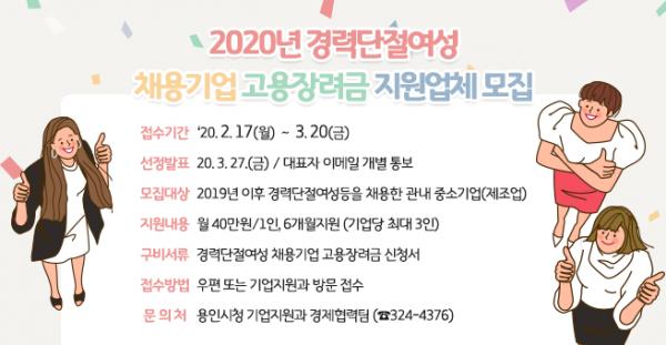 용인시는 경력단절여성을 채용하고 고용장려금을 지원받을 관내 중소 제조업체를 다음달 20일까지 모집한다.