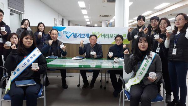 이와 함께 직원 전체가 씨앗을 심은 청렴화분 및 “양심은 챙겨보개 욕심은 버려보개” 라는 현수막을 사무실 벽에 부착해 청렴 실천의지를 다졌다.