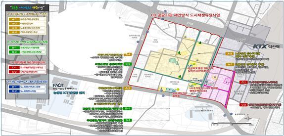 송학동 KTX익산역 서편지역 도시재생 사업은 총사업비 352억원을 투입해 생활 SOC복합시설의 확충, 공동체 일자리플랫폼 조성, 지역맞춤형 경제 활성화지원, 노후주택 집수리사업지원, 자연순환형 공동체텃밭 조성 등을 통해 낙후된 마을 살리기에 나선다.