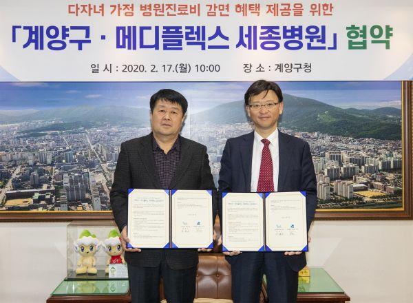 인천 계양구는 17일 메디플렉스 세종병원과 다자녀 가정의 병원진료비 감면을 위한 업무협약을 체결했다.