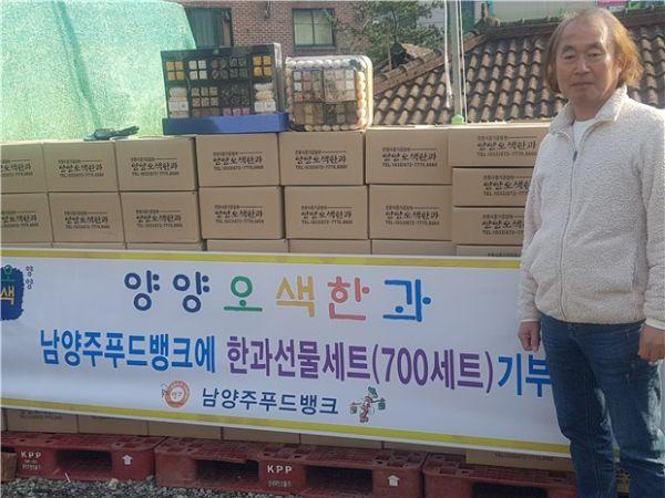 강원도 양양 소재 양양오색한과는 남양주시 거주 소외 어르신을 위한 한과 선물세트 700박스를 남양주푸드뱅크에 전달했다.