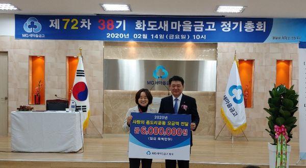 이번에 전달된 기탁금은 지난 2019년 11월부터 올해 1월까지 총 3개월간 화도새마을금고 임직원 및 주부노래교실, 주부봉사단원들이 함께 모금에 참여해 마련됐다.