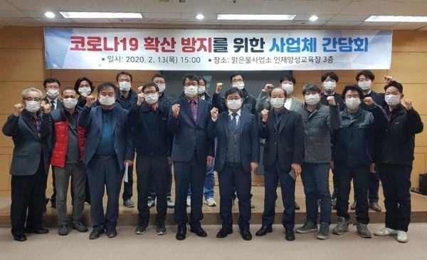 이날 간담회는 상·하수도시설 공사 및 유지보수 관련 업체 대표 11명과 관계 공무원 9명 등 20명이 참석한 가운데 최근 확산 추세에 있는 코로나19 예방수칙과 행동요령을 공유하고 사업체 및 행정기관의 대응 관리방안등에 관해 논의했다.