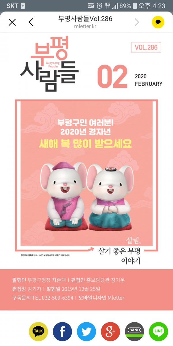 부평구의 구정소식지 ‘부평사람들’이 휴대전화 메신저인 ‘카카오톡’으로 구민들에게 다가간다.