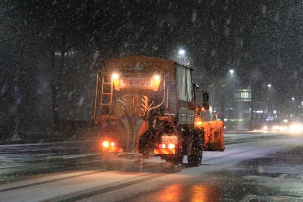 제설작업에는 유니목 등 제설차량 4대와 1톤 차량 8대 등이 투입됐으며 친환경제설제 총 99톤이 사용됐다.