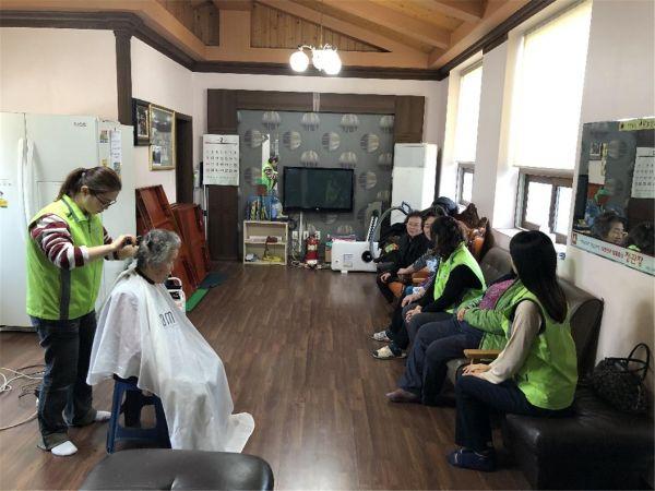 이날 이미용 봉사는 김지선 원장이 고렴 1리 마을회관에 방문해 교통편이 좋지 않고 거동이 어려운 어르신 10명을 대상으로 헤어 커트를 실시하고 지역사회보장협의체 위원들이 참여해 커트가 끝난 후 머리를 말려드리고 안부를 물으며 어르신들의 정서를 지지하며 봉사의 원활한 진행을 도왔다.