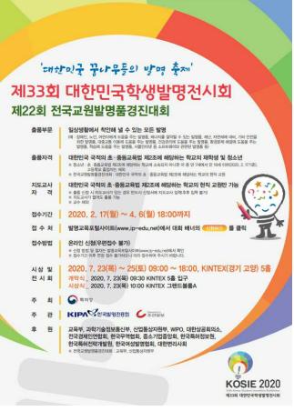 청소년 발명가 프로그램 : 지식재산 창출 및 활용에 대한 교육·컨설팅 등을 통해 미래 사회를 혁신적으로 주도해 나갈 청소년 창업가 육성 프로그램‘제33회 대한민국학생발명전시회’와 관련한 보다 자세한 사항은 발명교육 포털사이트를 통해 알 수 있으며 기타 문의사항은 본 대회를 주관하는 한국발명진흥회 창의발명교육연구실로 문의하면 된다.
