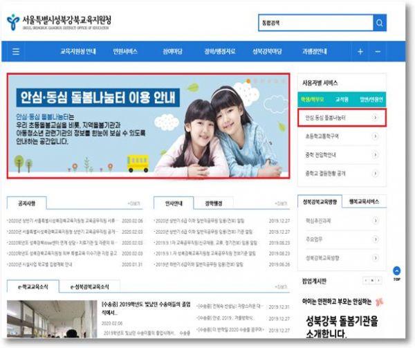 서울시교육청 산하 성북강북교육지원청은 17일부터 교육지원청 홈페이지에서 관내 돌봄 기관 정보와 돌봄 지도를 제공하는 ‘안심·동심 돌봄나눔터 웹서비스’를 실시한다.