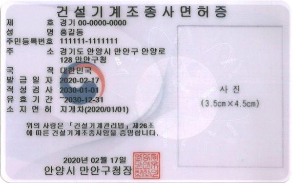 안양시가 올해부터 건설기계조종사 면허증을 운전면허증과 같은 PVC재질의 카드형태로 발급해 반응이 좋다.