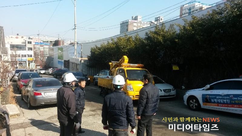 | 남구시설관리공단 시설물 안전점검을 하는모습 <ⓒ미디어타임즈> |