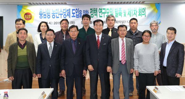 연구모임은 방 의원을 대표로 김득응 농경환위 위원장을 비롯한 김복만·김명선·조승만·김영수·이선영 의원과 김병혁 충남 친환경농업인연합회 정책위원장, 조광남 예산덕산농협 이사 등 관련 전문가, 공무원 등 14명이 위원으로 참여했다.