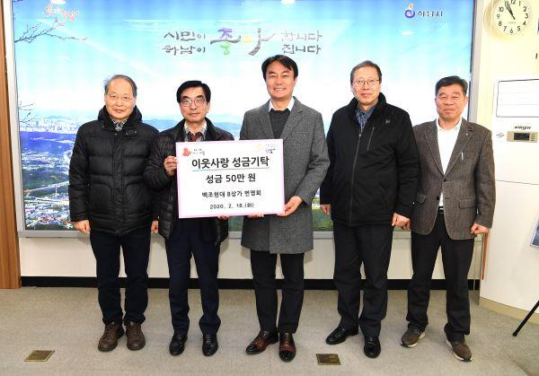 이날 기탁식에는 김상호 하남시장을 비롯해 백조현대B상가번영회 이성근 회장, 이강용 감사, 이문섭 소장 등이 참석했다.