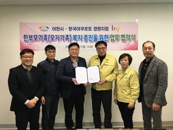 이천시는 지난 17일 ㈜한국야쿠르트 경원지점과 한부모가족 복지증진을 위한 업무협약을 체결했다고 밝혔다.
