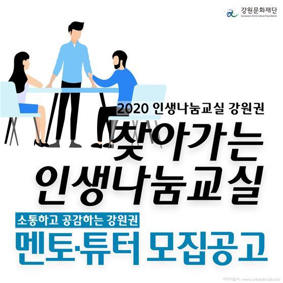 강원문화재단이 2020년 인생나눔교실 '찾아가는 인생나눔교실'에서 강원도 아동, 청소년, 청년과 소통할 멘토 및 튜터를 모집한다.