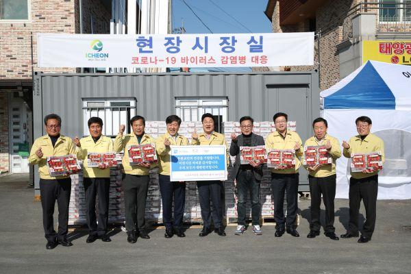 협의회는 성숙한 포용과 희생정신으로 국가적인 어려움에 동참해준 이천시민들과 엄태준 이천시장에게 응원의 메시지를 보내며 성금을 기탁했으며 논산시는 지역특산품인 딸기 2kg들이 500상자를 국방어학원 임시생활시설과 코로나-19 대응 현장근무자 등에 전달했다.