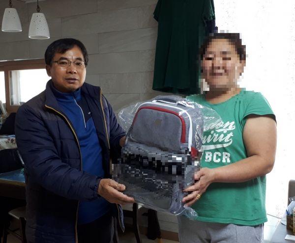 관내 새 학교 진학 학생 4명에게 책가방 전달