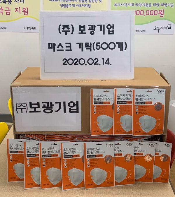 ㈜보광기업 이명열 대표는 최근 코로나19 감염병 예방을 위해 저소득·취약계층에게 전달해 달라며 방역마스크 500개를 광주시 남부 무한볼봄 행복나눔센터에 기탁했다.