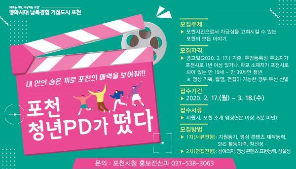 포천시는 지난 17일부터 오는 3월 18일까지 포천 홍보 영상 콘텐츠를 제작할 청년 PD를 모집한다.