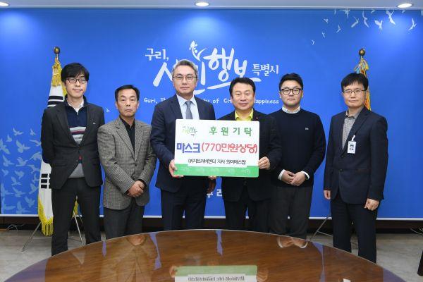 구리시는 지난 18일 ㈜지트리비앤티 지사 와이에스팜으로부터 방역마스크 1만장을 전달 받았다.