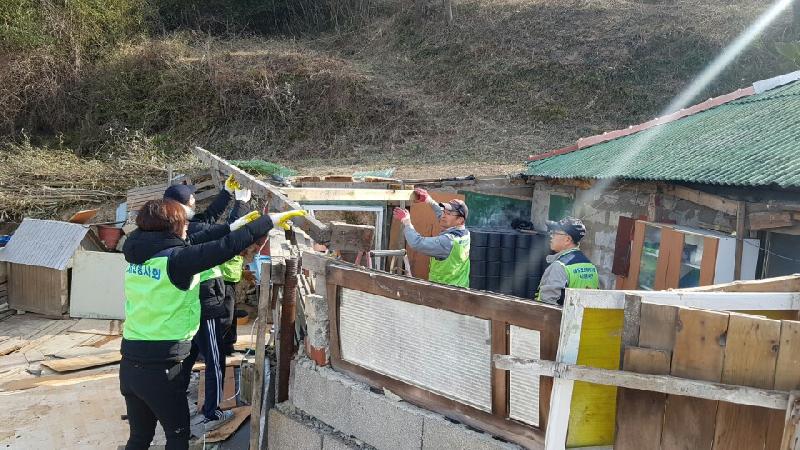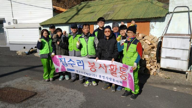 | 지역 내 독거노인세대 주거환경 개선사업, 장애인세대 목욕 봉사, 환경정화 활동을 펼치고 있는 대우조선해양 통영사랑봉사회원들 (사진=통영시청 제공) |