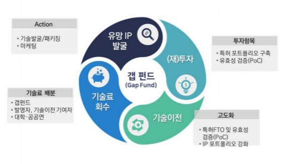 특허 갭펀드는 대학과 공공연구기관이 보유한 특허와, 기업이 원하는 기술간의 수준 차이를 해소하기 위해 특허검증, 시제품 제작, 기술마케팅 등 기술 상용화를 지원하는 사업이다.