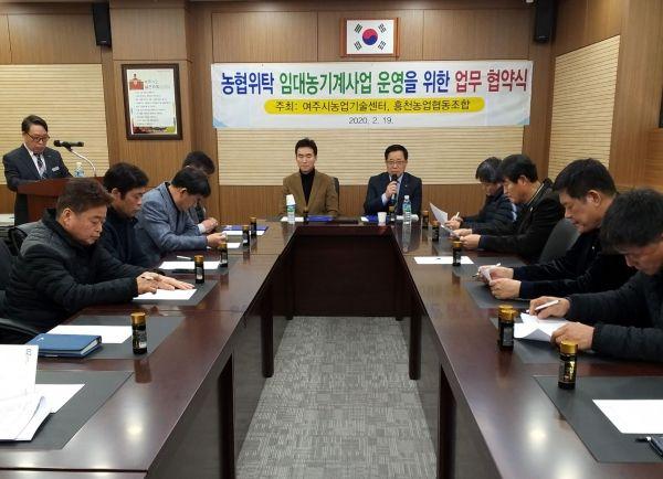 여주시농업기술센터와 흥천농업협동조합은 19일 농협회의실에서 관계관 농협임원 등 20여명이 참석한 가운데 농협위탁 임대농기계 운영을 위한 협약식을 가졌다.