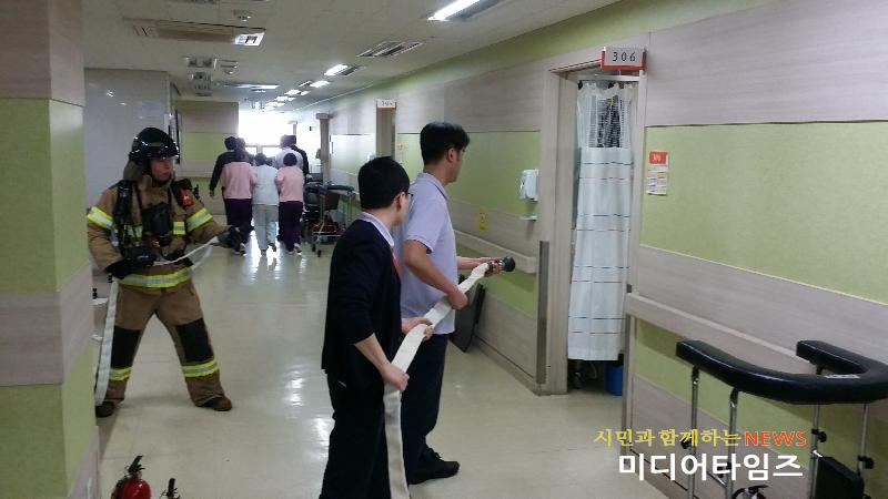 | 힐링스병원 민,관 합동소방훈련 실시하는모습.<ⓒ미디어타임즈> |
