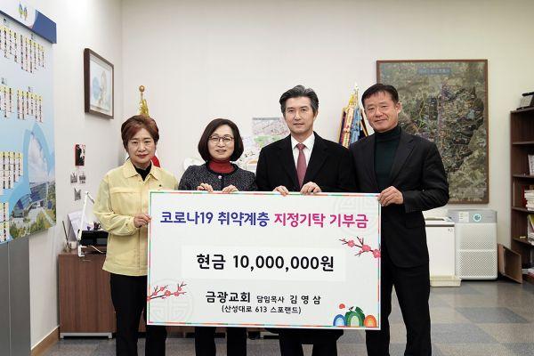 수정구 양지동 소재 금광교회는 지난 19일 성남시에 코로나19 예방 물품 구매비 1000만원을 냈다.