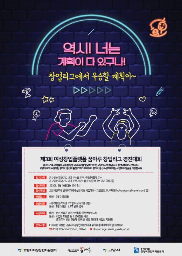 고양시는 고양시여성창업지원센터와 예비여성창업자와 새내기여성창업자의 참신한 창업아이디어 발굴과 창업지원을 위한 ‘제3회 여성창업플랫폼 창업리그 경진대회’를 개최한다고 밝혔다.