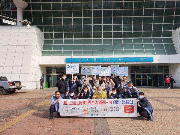 이날 공무원 6명과 동두천 중·고등학교 학생 10명은 지행역을 이용하는 시민들에게 감염병 예방수칙이 안내전단지와 마스크, 손소독제를 배부하며 감염병 예방 홍보에 총력을 기울였다.