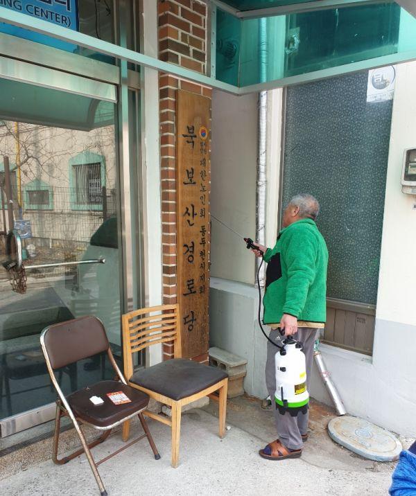 보산동 새마을 지도자 관내 경로당에 방역 실시