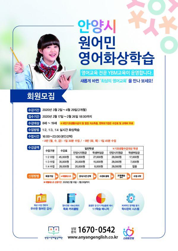안양시인재육성재단이 관내 거주 초.중.고등학생 대상 2020년도 원어민 화상외국어 수강생을 모집한다고 18일 밝혔다.