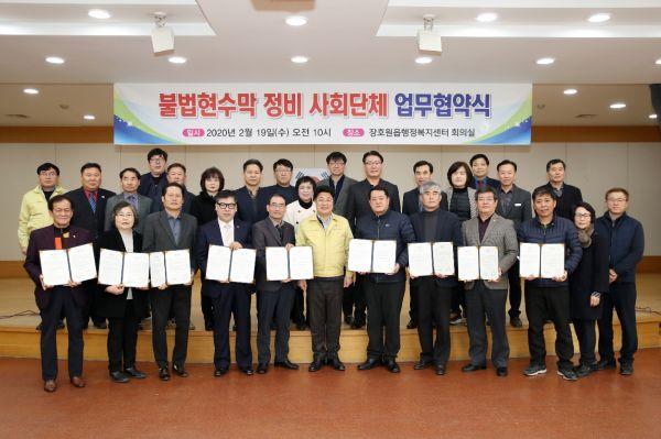 이천시는 2020년 불법현수막 정비계획에 따라 읍·면·동 사회단체와 업무협약을 지난 19일 수요일 장호원읍행정복지센터에서 체결했다.