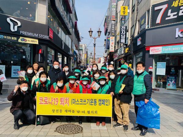 이 날 창전동 각 마을 새마을 회장과 부녀회장이 함께 문화의 거리를 찾는 시민들에게 마스크와 국민 감염예방 행동수칙 안내문을 함께 나누며 마스크 사용과 꼼꼼한 손씻기 등 개인 위생관리를 당부했다.