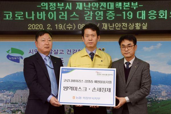 농협중앙회 의정부시지부는 지난 19일 코로나19의 확산 방지를 위해 의정부시에 마스크와 손소독제를 전달했다.