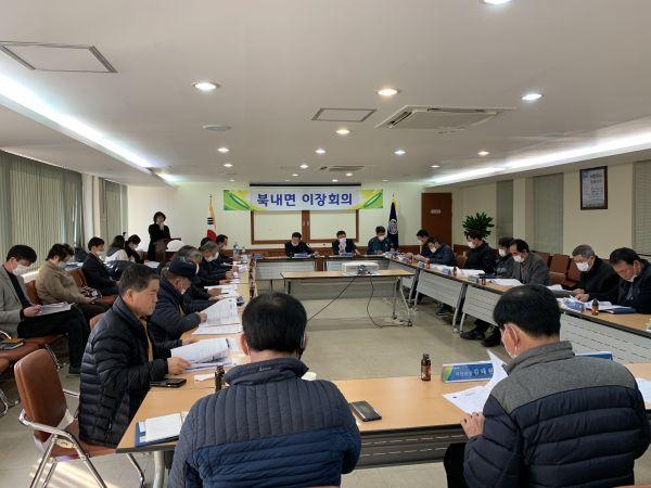북내면에서는 20일 북내면행정복지센터 회의실에서 김영자 여주시의회 부의장, 북내면 기관단체장 및 각 마을 이장들이 참석한 가운데 2월중 2차 이장회의를 개최했다.