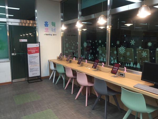홈웍 코너는 어린이들의 취향을 고려한 조명 설치와 함께 전용집기를 제작해 비치하고 와이파이 환경구축과 학습용 테블릿PC 5대, 데스크탑 1대 등 정보활용 기기도 제공된다.