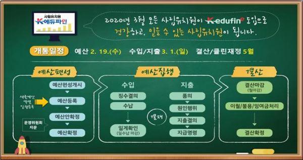사립유치원 예산편성 일정을 고려해 2월 19일부터 예산 편성 기능을 활용할 수 있도록 지원하고 수입·지출 기능은 회계가 시작되는 3월 1일 그리고 결산 및 클린재정 기능은 5월에 개통해 단계적으로 도입할 계획이라고 전했다.