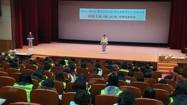 부천시가 지난 20일 시청 어울마당에서 2020 어린이통학안전사업 참여 안전교육지도사들을 대상으로 안전물품을 배부하고 안전교육을 실시했다.