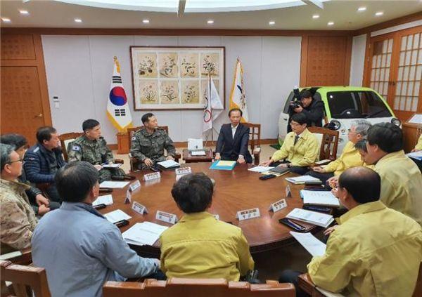 최문순 강원도지사는 지난 20일 아프리카돼지열병에 걸린 야생멧돼지의 동·남진 차단을 위한 효율적인 총기 포획, 폐사체 수색 등 개체수 저감 대책과 농장 방역강화 방안 등에 대한 긴급 논의를 위해 軍, 멧돼지 포획단, 접경 시군 관계자들과 긴급 방역대책 회의를 개최했다.